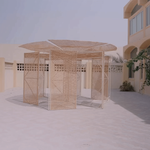 A film by nmbello Studio, “CONTEXT IN DESIGN, DESIGN IN CONTEXT” follows the production process of the kiosk in both Lagos, Nigeria and Sharjah, UAE. The film dives into the fabrication of the metal frames and follows closely the weavers and weaving technique used to create the kiosks, bamboo weaving technique in West Africa and the gargour date palm weaving technique in the Middle East, probing a dialogue and narrative of the similarities in both cities while posing the question of the potential of design being a commodity to both cities.